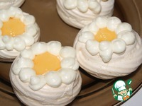 Гнезда в безе заполнить курдом. Вокруг отсадить крем (насадка труба). |