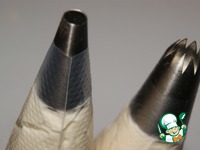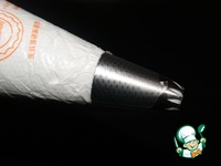 Поместить крем в 2 кулинарных мешка - один с насадкой труба, второй звездочка. В мешочек с насадкой труба крема нужно 1/3 от общего веса. |