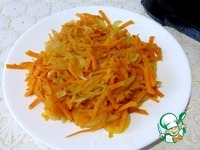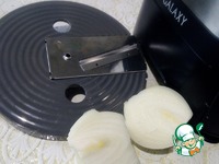 Приготовить начинку. Лук нашинковать при помощи комбайна GALAXY соломкой, насадкой для шинковки. |
