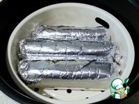 Сворачиваем в рулет, затем плотно в фольгу. |