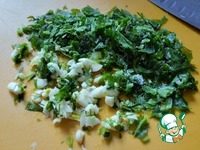 Порубить чеснок и зелень петрушки (у меня замороженная). |