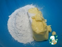 К утру крем хорошо загустел, начинаем готовить печенье. Сливочное масло комнатной температуры и сахарную пудру положить в миску. Хорошо взбить миксером. |