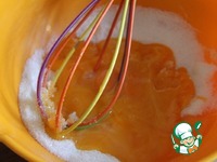 В миске соединить желтки и 100г. сахар. Поставить на водяную баню. Нагревать желтки, постоянно помешивая и не давая им кипеть. Постоянно мешать массу в течение 6 минут на огне. |