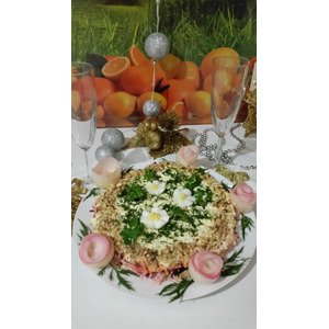 Описание: Этот салат готовится быстро и легко, он очень нежный, да и по бюджету доступный. Такой салат можно подать и утром на завтрак, и в обед и на ужин. Так же на праздник он будет украшением стола. Советую приготовить хоть раз, и он станет вашим любимым салатом.