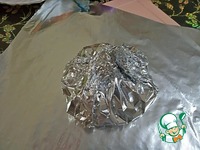 Сначала аккуратно упаковываем в первый слой фольги. Затем во второй. |