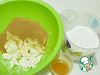Мягкое масло растереть с коричневым сахаром. Сахар можно взять и белый, но коричневый придает выпечке нежный карамельный привкус. |