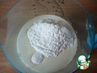 В холодные сливки высыпаем всю сахарную пудру и добавляем ванилин. |