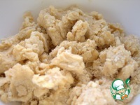 В просеянную муку (пока не всю, оставьте 1 стакан) с разрыхлителем покрошить мягкое масло. |