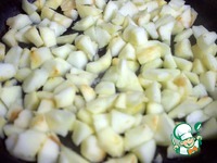 Яблоки очистить, нарезать кусочками и томить в сковороде с небольшим количеством воды. Сахар добавить в том случае, если не будут бананы и варенье. Я обошлась без сахара. |