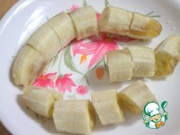 Я ещё использовала переспелые бананы. Размять их вилкой. В оригинале яблоки и вяленая вишня. |