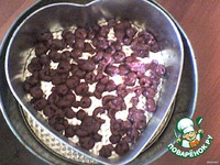 во вторую часть смеси добавить 4 ч.л. какао,вылить сверху на слой с вишнями.И опять в холодильник.Когда немного прихватится,вылить последнюю часть.И в холодильник до полного застывания. |