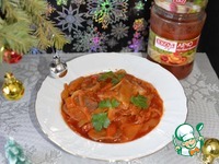 Описание: Предлагаю Вам ароматное, вкусное, горячее блюдо - язык, тушёный в томатном соусе.