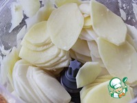 Нарезать на тонкие ломтики при помощи шинковки в кухонном комбайне. |