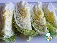 Капусту промыть, очистить от испорченных листьев, удалить сердцевину, разрезать на сектора. |