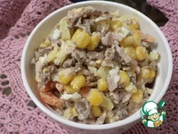 Описание: Замечательный салат с мясом лося! Друг нашей семьи- охотник! Он каждый год делится с нами мясом этого зверя! Ингредиенты частично из салата "Оливье", а подать можно, как я, в год мышки - порционно украсив сыром и милой мышкой из яйца. )))