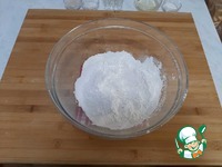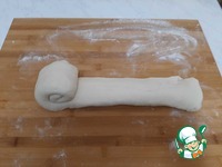 Хлеб смазываем молоком и слегка присыпаем мукой. |