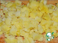 Картофель отварить, остудить и нарезать мелким кубиком. |
