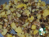 Грибы также нарезать небольшими кусочками и отправить к луку. Обжаривать минут 10. |