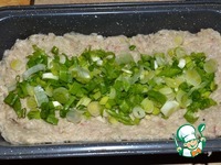 Форму смазываем растительным маслом. Выкладываем часть фарша. |