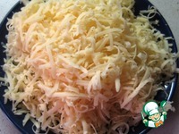6. и завершающий слой - натертый на мелкой терке сыр. Даем салату настояться 1 час в холодильнике и подаем к столу! |
