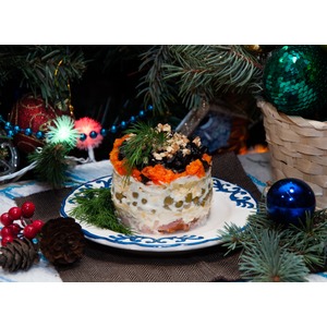 Описание: Чернослив с орехами оттеняют приправленную майонезом смесь от «Оливье», представляя совершенно иное блюдо. Привлекательнее всего салат «Прага» выглядит утрамбованным внутри формовочного кольца на плоской тарелке или в прозрачном салатнике.