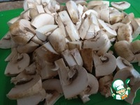 Шампиньоны помыла и разрезала на четыре части (грибочки не крупные попались). |