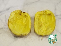 Разрежьте пополам и выскребите мякоть, оставив достаточно тонкие стенки. |