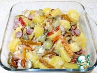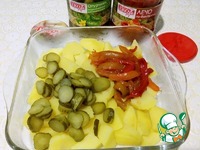 Всю эту красоту ТМ ЕКО огурчики и лечо выкладываем на картофель. |