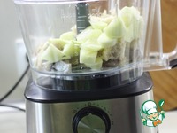 Вырезать несколько долек у яблока для украшения Оставшееся яблоко и остальные ингредиенты для форшмака поместить в чашу блендера с ножами. ( я использую кухонный комбайн Galaxy) |