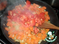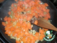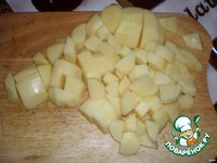 Очистить от кожуры, нарезать кубиками,. отправить на сковороду. Всю зажарку отправить в бульон |