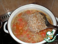 Немного прокипятить. В конце добавляем вареную гречку. |