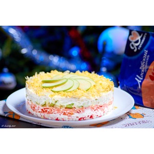 Описание: Когда-то мы купили этот салат в одном из супермаркетов Казани. Нам понравился его необычный вкус, а состав был написан на упаковке. Ничего невероятного в ингредиентах, а вкус очень свежий. Часто готовим его на праздники, прекрасно разбавляет ассортимент сытных салатов и закусок