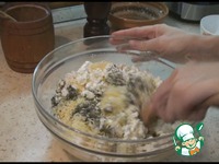 Твердый сыр натереть на мелкой терке, сливочное масло растопить, лук мелко порезать, чеснок измельчить. Добавляем все ингредиенты, хорошо перемешаем. |