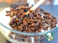 Изюм залить кипятком на 10 минут. Воду слить и добавить ром. Перемешать. |