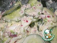 Режем крупно яица и огурец.Я резала на кружки и еще пополам. |