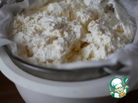 Чтобы получить основу крема, можно купить готовый крем маскарпоне, а можно заморозить сметану, а накануне достать размораживать на ткань в сито. |