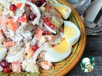 Заправить салат, т. к. все продукты готовы, я салат не солю. При подаче украсить ягодами брусники и клюквы. |