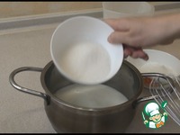 Пока выпекается бисквит приготовим крем. В кастрюльку вливаем 400 мл молока, добавляем сахар и ванильный сахар, ставим на огонь и доводим до кипения. |