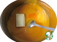Отливаем 30 мл пюре в отдельную посудину. От общего количества сливочного масла отрезаем 50 г. |