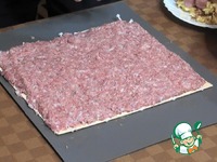 Описание: Состав фарша этого блюда позаимствован из армянской кухни. Начинка из омлета - неотъемлемая часть русской кухни, а точнее, зраз с омлетом. А вот технология сворачивания пришла от заокеанских гриль-мастеров, и позволяет сделать слой фарша тоньше, а за счет начинки он остается сочным после приготовления.