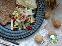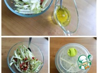 Описание: Салат из зелёной редьки с калиной и грецкими орехами с пикантной заправкой. Салат посыпан кокосовой стружкой. Сплошные витамины. Салат делала к мраморной говядине-гриль.