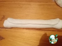 Каждый шар раскатать в прямоугольник, толщиной не более 1 см, затем, подтягивая тесто, скатать в рулет |