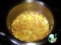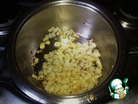 Пока желудки варятся, занимаемся птитимом. В кастрюльку наливаем немного масла, добавляем мелко нарезанную луковицу и обжариваем её. |