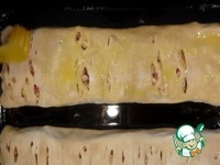 Смазываем желтком и отправляем в духовку при температуре 200° до готовности. |