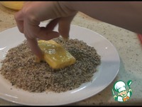Обваливаем брынзу сначала в муке, потом яйце, потом в измельченных семечках. |