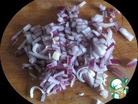 Ставим форму для салата на плоскую тарелку и первым слоем выкладываем кальмары с майонезом. Сверху выкладываем лук, чуть подсаливаем и смазываем его майонезом. |