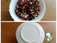 Заправляем винегрет, накрываем крышкой и отправляем на немного в холодильник, чтобы он настоялся. хотя его можно подать и сразу. |