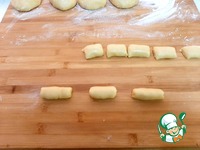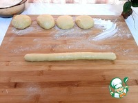 Тесто делим на 5 равных кусочков. Формируем колбаску из каждого кусочка. |