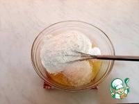 Добавляем муку, кокосовую стружку и разрыхлитель. |