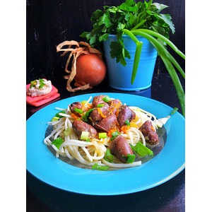 Лук нарезать полукольцами, морковь натереть на тёрке для корейской моркови. Обжарить овощи на растительном масле. Срезать «хвостики» у сердечек и добавить к овощам. Обжарить с овощами 10 минут. |